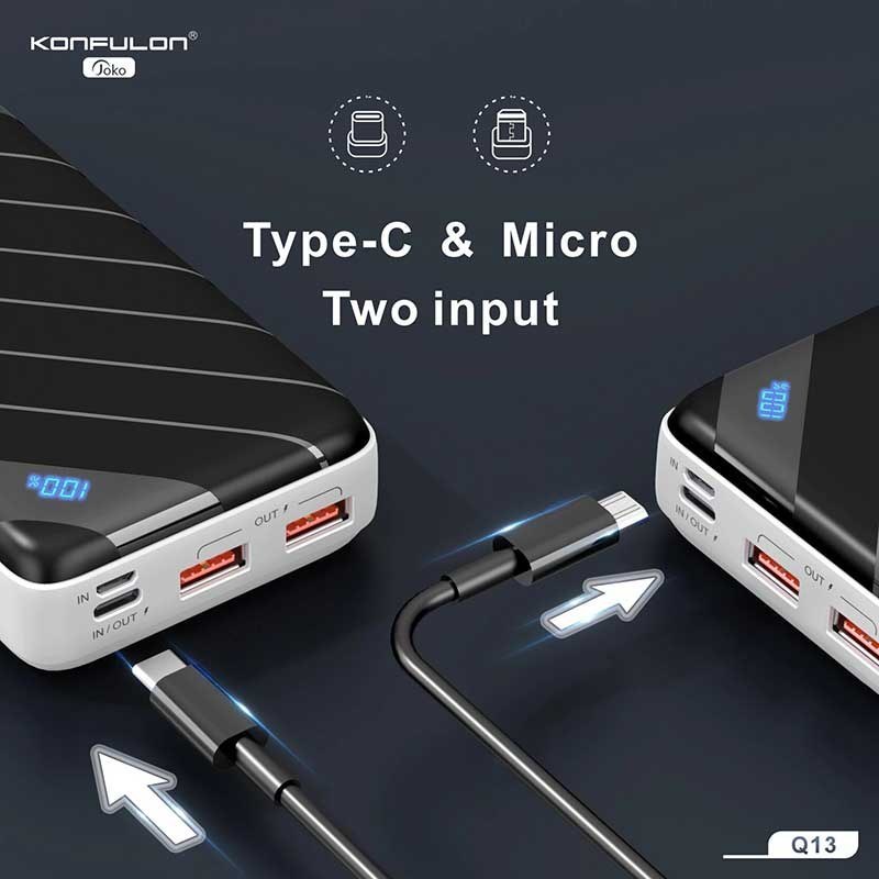 پورت ورودی 1 : Micro DC 5V/2A، 9V/2A، 12V/1.5A Max, پورت ورودی 2 : Type-C PD 20W DC 5V/2A، 5V/3A(SCP) 9/2A 12V/1.5A MAx |